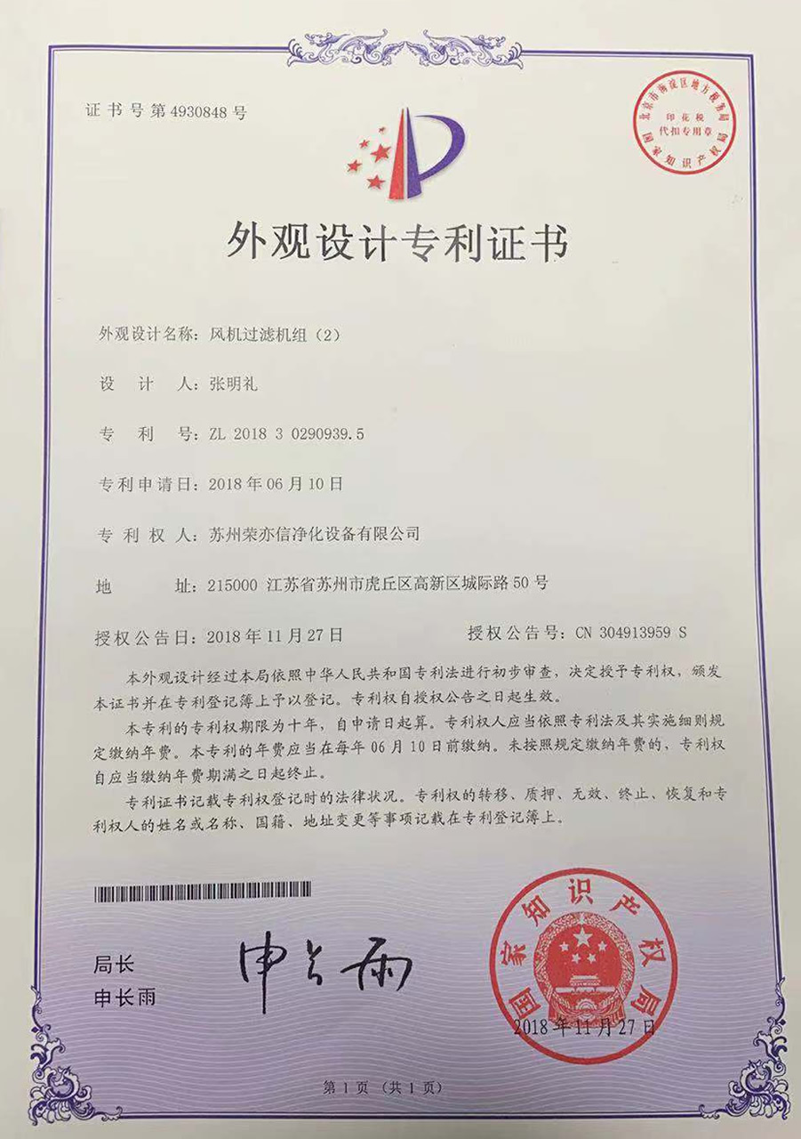外觀設(shè)計(jì)專利證書